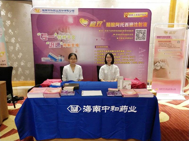 海南中和藥業股份有限公司作為婦產科領域的新興企業,參加本次大會,設置專門展臺,宣講早產領域的經典用藥—和雙 醋酸阿托西班注射液。不僅如此,大會主席---中山大學孫逸仙紀念醫院張建平教授也在會議中系統介紹了早產中阿托西班的用藥體驗。同時,中山大學附屬第一醫院王子蓮教授也在早產專題會場詳細介紹了阿托西班在雙胎早產使用中的經驗分享。與會專家紛紛參與討論,分享臨床體驗,為國內早產患者臨床防治帶來更舒適、更安全的選擇。