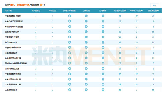 據米內網MED中國藥品審評數據庫2.0數據,截至目前,除了已經通過一致性評價的注射用阿奇霉素,國家藥監局還接收到化藥注射劑一致性評價申報29個,涉及14個品種、10家企業。