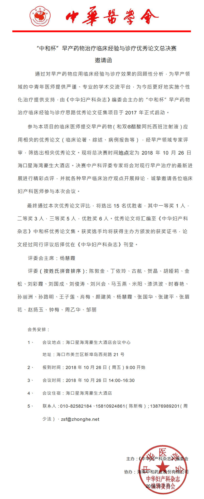 參與本項(xiàng)目的臨床醫(yī)師提交早產(chǎn)藥物(和雙?醋酸阿托西班注射液)應(yīng)用相關(guān)的優(yōu)秀論文(臨床論著、綜述、病例報(bào)告等),經(jīng)早產(chǎn)領(lǐng)域?qū)<以u(píng)審,篩選出相關(guān)優(yōu)秀論文。現(xiàn)將總決賽時(shí)間地點(diǎn)定為 2018 年 10 月 26 日海口星海灣豪生大酒店。決賽中產(chǎn)科評(píng)委專(zhuān)家將會(huì)對(duì)現(xiàn)行早產(chǎn)治療的最新進(jìn)展進(jìn)行精彩點(diǎn)評(píng),并就各種早產(chǎn)臨床治療觀點(diǎn)開(kāi)展辯論,誠(chéng)摯邀請(qǐng)各位臨床婦產(chǎn)科醫(yī)師參與本次會(huì)議。