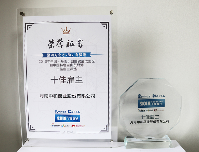 2019年3月日上午,位于海口市金盤路的海南日報社新聞中心熱鬧非凡,2018年中國(海南)自由貿易試驗區和中國特色自由貿易港十佳雇主頒獎活動在這里舉行。“聚四方之才、助力自貿港”海南十佳雇主評選活動由南海網、58同城、海南省中小企業服務中心主辦,自2018年11月日活動啟動以來,共吸引了近家海南知名企業報名參與,歷經企業報名、網絡投票、員工問卷調查、專家團現場評審等多項評審程序,最終評選出了海南自貿(區)港優秀雇主品牌,海南中和藥業榮獲“十佳雇主”稱號。