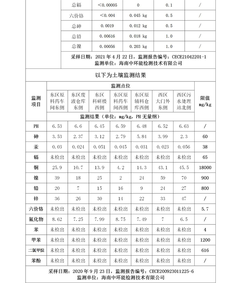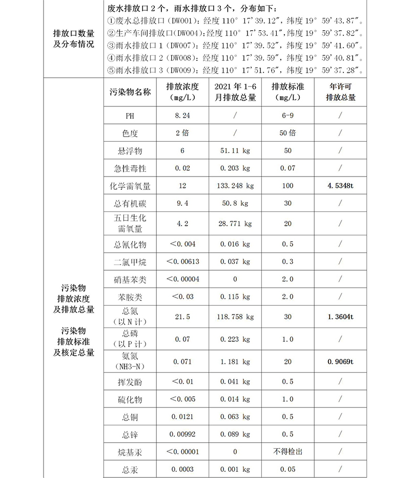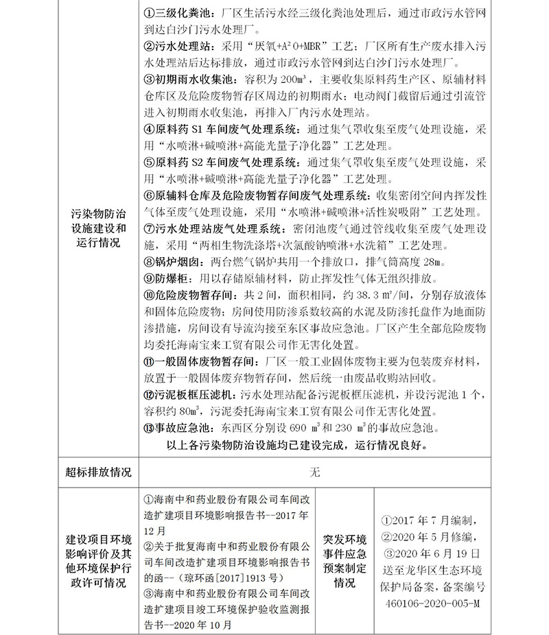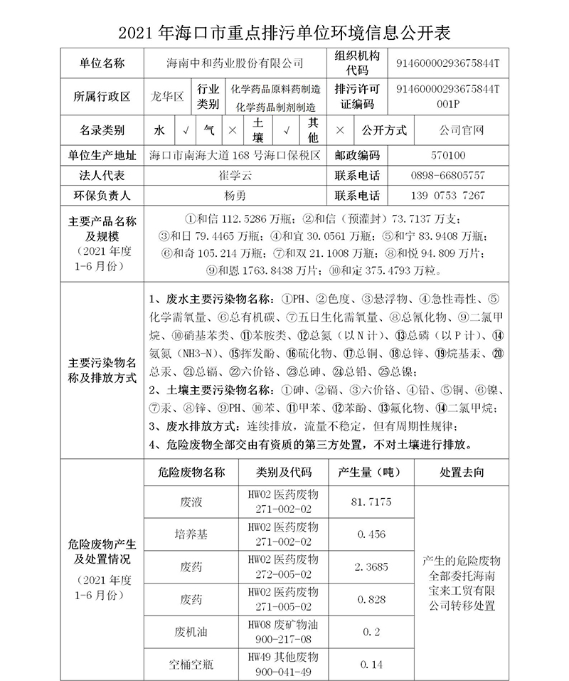 海南中和藥業--2021年海口市重點排污單位環境信息公開表