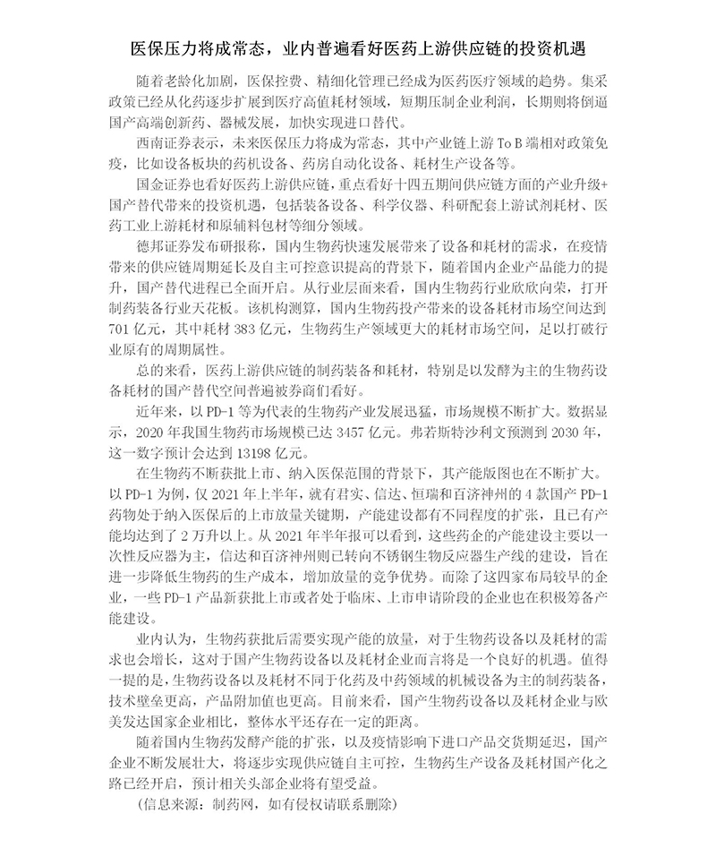 醫(yī)保壓力將成常態(tài),業(yè)內(nèi)普遍看好醫(yī)藥上游供應鏈的投資機遇