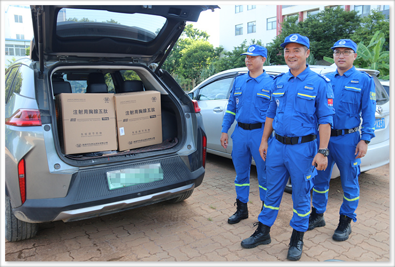 8月9日上午,為了助力公益救援事業,守護藍天救援團隊的健康,海南中和藥業股份有限公司向海口市藍天救援隊捐贈一批免疫調節藥物和信-注射用胸腺五肽,并在公司舉行了捐贈儀式。
